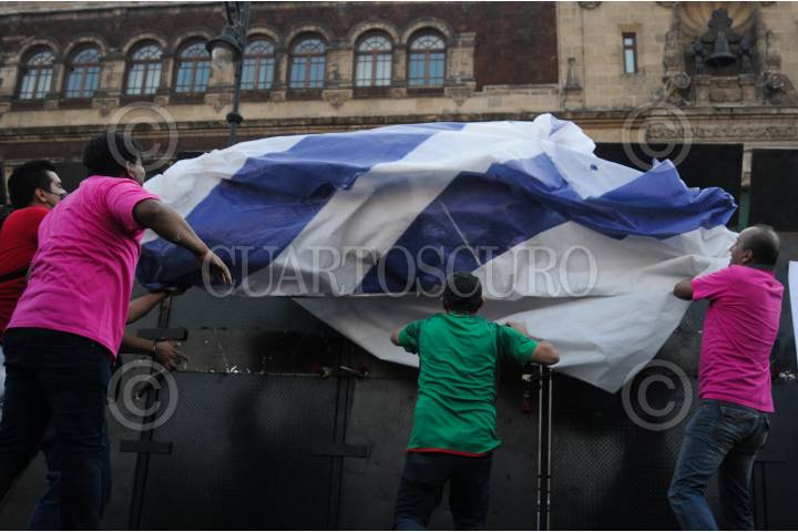 Asistentes de la marcha retiraron La manta con la imagen de Genaro García Luna.
