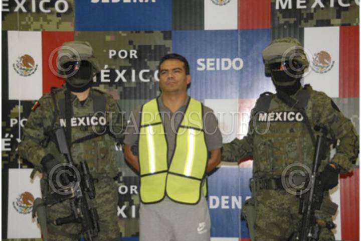 HUIXQUILUCAN, ESTADO DE MÉXICO, 04NOVIEMBRE2012.- Jesús Alfredo Salazar Ramírez, "El muñeco" y/o "El Pelos", fue capturado por elementos de la Secretaria de la Defensa nacional, el pasado 1 de noviembre como parte de los trabajos que realiza en conjunto con la Procuraduria General de la República. Alfredo Salazar, es considerado presuntamente uno de los lugartenientes mas importantes de Joaquín Guzman Loera "El Chapo" al cubrir Sonora y una parte de la sierra de Chihuahua. FOTO: SEDENA /CUARTOSCURO.COM