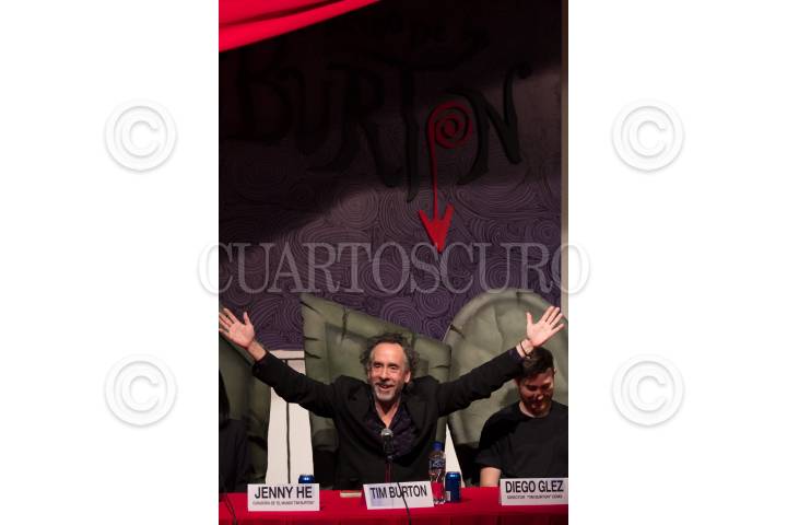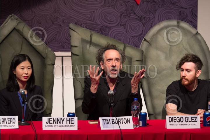 CIUDAD DE MÉXICO, 04NOVIEMBRE2017.- El director y productor de cine Tim Burton estuvo presente en el Museo Franz Mayer para dar los últimos detalles de su exposición "El mundo de Tim Burton", próxima que se inaugurara el 6 de diciembre en dicho museo. Durante la conferencia de prensa fue acompañado por Héctor Rivero, director del recinto; Jenny He, curadora de la exposición, y Diego Glez, director de "Tim Burton CDMX". FOTO: GALO CAÑAS /CUARTOSCURO.COM