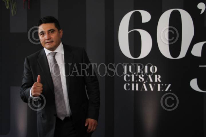 Érik Isaac Morales Elvira más conocido como "El Terrible Morales", exboxeador profesional y entrenador mexicano, durante la Alfombra negra 60’s del boxeador mexicano Julio César Chávez