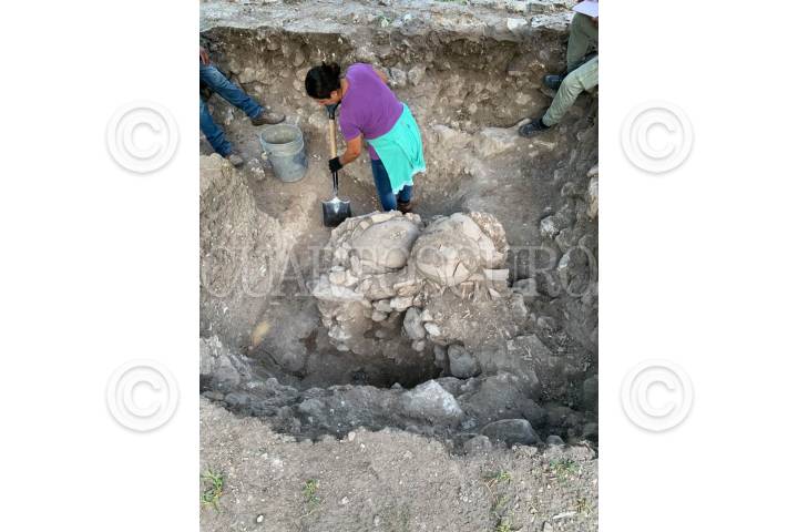 El INAH descubre una osamenta humana ataviada con un anillo de jade, en la Zona Arqueológica El Tigre.