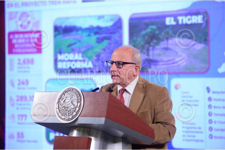 EL TIGRE, CAMPECHE, 30OCTUBRE2023.- La Secretaría de Cultura del Gobierno de México, a través de un equipo de especialistas del Instituto Nacional de Antropología e Historia (INAH), identificó y exploró una estructura circular en El Tigre, Campeche, la cual data de la ocupación tardía de este antiguo asentamiento maya, entre los años 1000 y 1200 d.C., y que pudo estar vinculada al culto a la deidad Kukulcán, que en el Altiplano equivale al dios del viento Ehécatl-Quetzalcóatl. En la conferencia matutina del presidente de la República, Andrés Manuel López Obrador, y previo a detallar las características del descubrimiento, el director general del INAH, Diego Prieto Hernández, expresó que todas las dependencias del sector cultura federal están abocadas a fortalecer la solidaridad con las y los hermanos de las costas de Guerrero, de ahí que el instituto habilitará temporalmente en el Museo Histórico de Acapulco, Fuerte de San Diego, un centro de operaciones para favorecer la ayuda a la población damnificada por el paso del huracán Otis. FOTO: INAH/CUARTOSCURO.COM