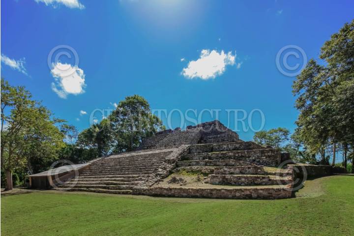 CANDELARIA, CAMPECHE, 06MARZO2024.- La enigmática zona arqueológica de El Tigre, conocida también por su antiguo nombre maya, Itzamkánac, se sitúa en el suroeste del estado de Campeche, dentro del municipio de Candelaria. Este sitio histórico sirvió como capital del cacicazgo maya de Acalán, un área que las crónicas del siglo XVI destacan como el mercado público más significativo del mundo maya. Sus impresionantes mascarones de estuco se llevan el protagonismo, mostrando características distintivas del período Preclásico Tardío. Los mascarones representan rostros humanos adornados con lo que parece ser gorros o cascos, además de presentar sobre las orejeras lazos o nudos entrelazados, símbolos del poder real atribuidos al Halach Uinic. Estas figuras, según interpretaciones de historiadores, podrían ser representaciones de los ancestros del linaje real del sitio, evocando la profunda conexión con sus raíces y el poderío de su civilización. Algunos investigadores sugieren que El Tigre pudo haber sido el escenario donde se llevó a cabo el sacrificio de Cuauhtémoc, el último tlatoani de México-Tenochtitlan. FOTO: MICHAEL BALAM/CUARTOSCURO.COM