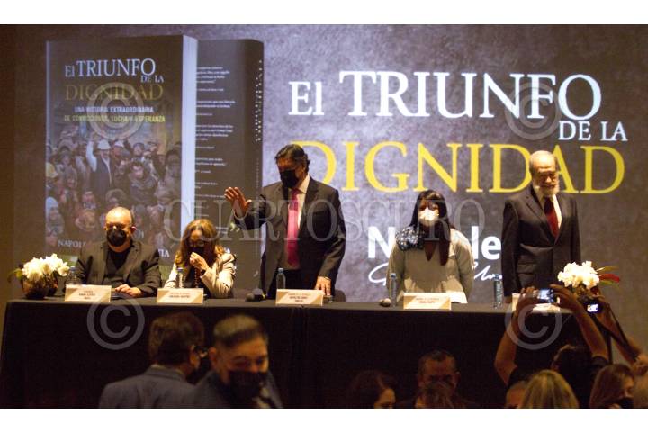 El senador de la república Napoleón Gómez Urrutia, presentó el libro "El triunfo de la dignidad", el cuál refiere a experiencias como el exilio y la lucha. Los periodista San Juana Martínez y Ramón Alberto Garza, así como la senadora Indira Kempins fueron los encargados de realizar la presentación.
