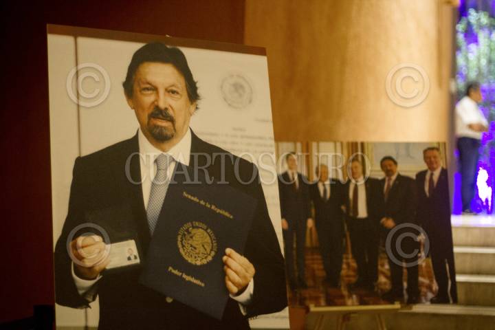 Napoleón Gómez Urrutia, senador de Morena, presentó su libro "El Triunfo de la Dignidad", en el Museo Nacional de Antropología.
