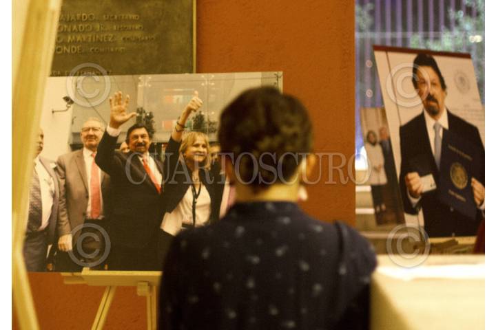 Fotografías en distintos ámbitos de la carrera de Napoleón Gómez Urrutia fueron expuestos en la sala de la presentación de su libro "El triunfo de la dignidad".