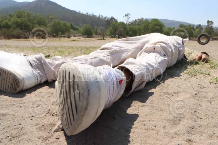 TLALNEPANTLA, ESTADO DE MÉXICO, 03MAYO2024.- Hallan a un hombre asesinado por impactos de arma de fuego en un campo de fútbol en la zona conocida como "cola de caballo". FOTO: ROGELIO MORALES/CUARTOSCURO.COM