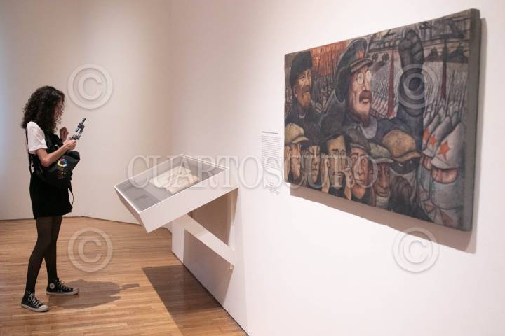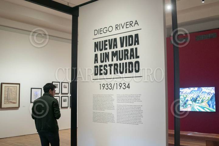 CIUDAD DE MÉXICO, 25JUNIO2024.- En el Palacio de Bellas Artes se presentó la exposición "Nueva Vida a un Mural Destruido 1933/1934. La muestra recorre la historia del mural que el artista Diego Rivera realizó en 1933 en el Centro Rockefeller en Nueva York, el cual fue censurado y destruido por los mismos contratistas. El mismo Rivera se encargo de hacer un segunda versión en el Palacio de Bellas en el año de 1934, y el cual esta titulado "El hombre controlador del universo". La muestra presenta, a través de testimonios materiales como bocetos, fotografías, fragmentos fílmicos y sonoros, hemerografía y pintura, dos momentos cruciales en la creación de esta obra monumental. FOTO: MOISÉS PABLO/CUARTOSCURO.COM