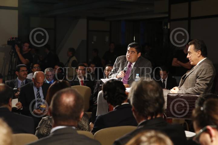MÉXICO, D.F., 25OCTUBRE2013.- Edgar Elías Azar, presidente del Tribunal de Justicia del Distrito Federal, el senador Omar Fayad, presidente de la Comisión de Seguridad Pública, Miguel Barbosa, coordinador de los senadores del PRD, y Roberto Campa, subsecretario de Prevención y Participación Ciudadana de la Secretaria de Gobernación participaron en la IV Cumbre de Seguridad El Nuevo Paradigma. FOTO: CUARTOSCURO.COM