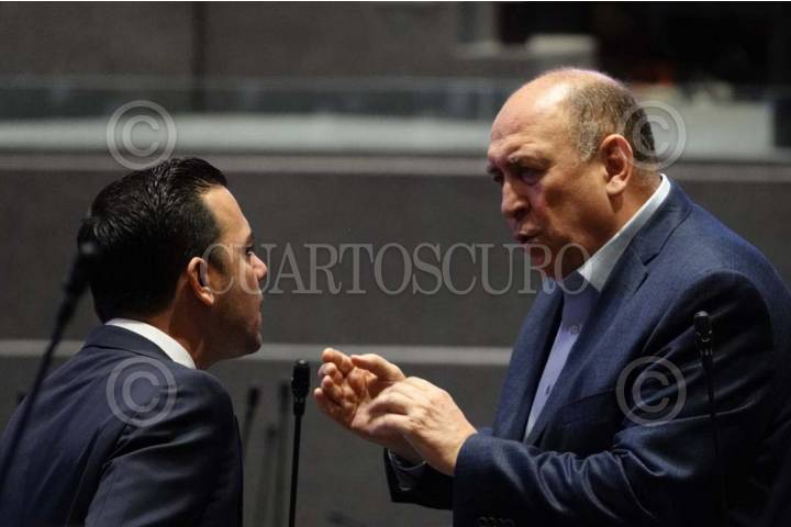 CIUDAD DE MÉXICO, 03ABRIL2024.- Los diputados Elías Lixa Abimerhi y Rubén Moreira conversaron durante la Sesión Ordinaria en la Cámara de Diputados. FOTO: GRACIELA LÓPEZ /CUARTOSCURO.COM