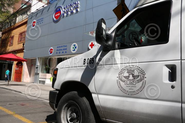 MÉXICO, D.F., 27ENERO2016.- Elba Esther Gordillo ex lideresa del SNTE fue trasladada del Hospital Xoco, al hospital privado María José Roma, ubicado en la colonia Roma, para recibir cuidados médicos. En la imagen custodios del sistema penitenciario de la Ciudad de México esperan a las afueras de dicho hospital. FOTO: SAÚL LÓPEZ /CUARTOSCURO.COM