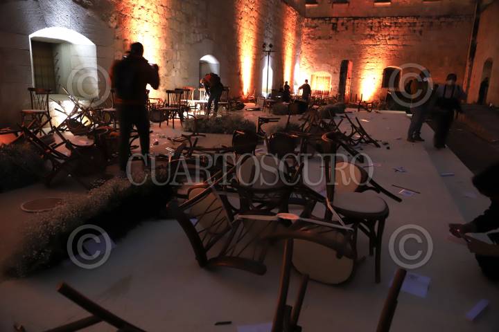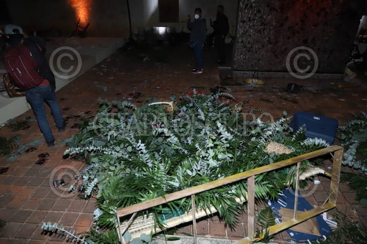 Manifestantes de la Sección 22 del magisterio de Oaxaca irrumpieron en el Patio de El Huaje donde se llevaría a cabo la ceremonia religiosa de la ex lideresa Elba Esther Gordillo y el abogado Luis Antonio Lagunas Gutiérrez.