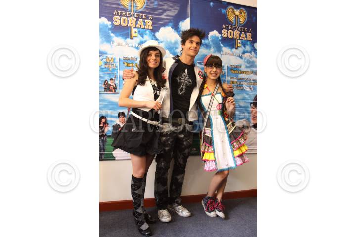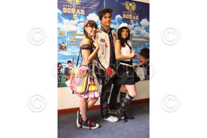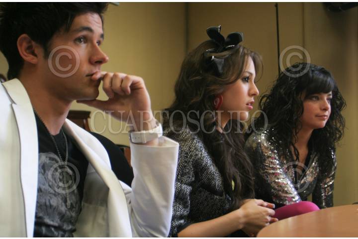 MÉXICO, D.F., 18MARZO2010.- Los protagonistas de la telenovela Atrévete a Soñar, Eleazar Gómez, Danna Paola y Violeta Isfel, posaron para los fotógrafos minutos antes de la conferencia de prensa que realizaron para dar a conocer su nuevo disco musical con canciones en vivo. FOTO: ENRIQUE ORDÓÑEZ/CUARTOSCURO.COM