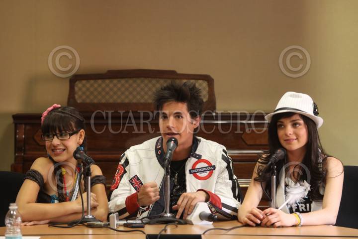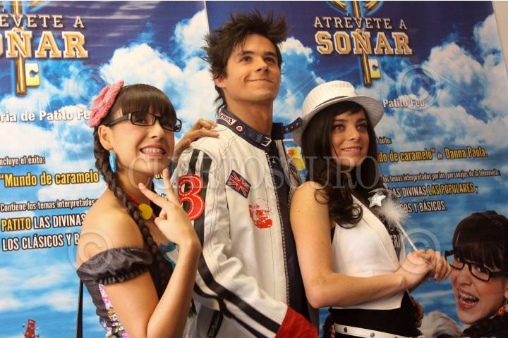 MÉXICO, D.F., 13MAYO2009.- Los integrantes de la banda Atrévete a Soñar, Violeta Isfel, Eleazar Gómez y Danna Paola, presentaron su primer album basado en las historias de Patito Feo, telenovela que actualmente cuenta con el gusto de muchos niños y adolescentes, esto en las instalaciones de Universal Music. FOTO: MOISÉS PABLO/CUARTOSCURO.COM