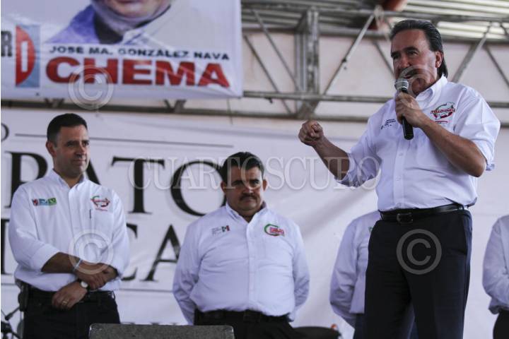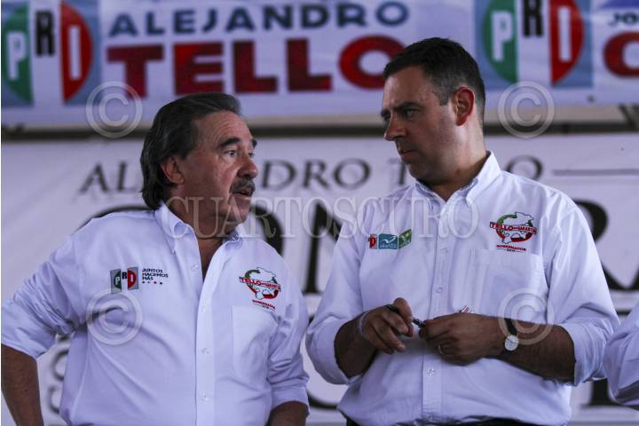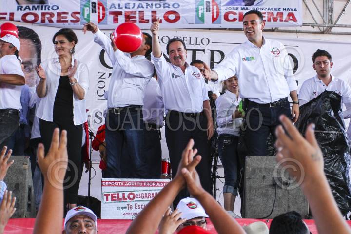 VILLA DE COS, ZACATECAS, 31MAYO2016.- Alejandro Tello, candidato a gobernador por la alianza PRI, PVEM y PANAL, en compañía de Emilio Gamboa Patrón, coordinador de la bancada del PRI en el Senado de la República, realizó uno de sus cierres de campaña regionales en el municipio. FOTO: ADOLFO VLADIMIR /CUARTOSCURO.COM