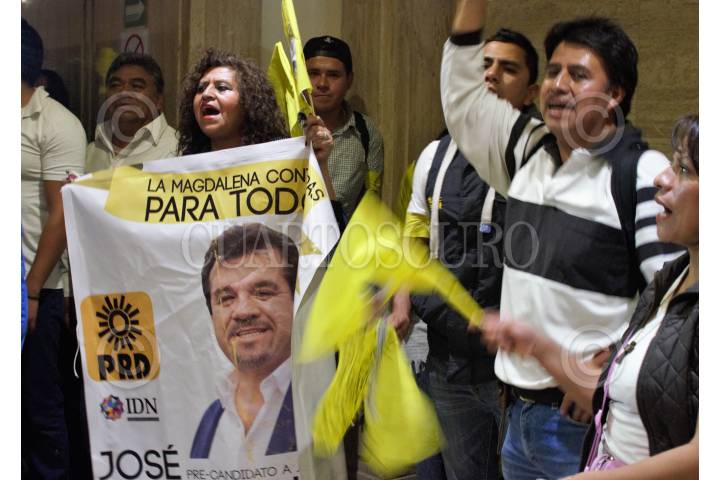 MÉXICO, D.F.,21FEBRERO2015.- Militantes de José Castillo acudieron con pancartas y porras para apoyar a uno de los candidatos a la delegación Magdalena Contreras. Inició la sesión del Consejo Nacional del PRD cuya finalidad será la selección de los candidatos delegacionales que contendrán en las futuras elecciones. FOTO: MARÍA JOSÉ MARTÍNEZ /CUARTOSCURO.COM