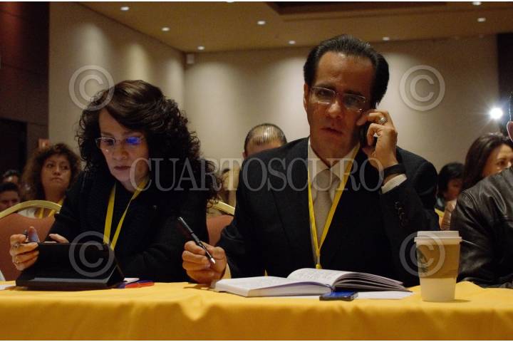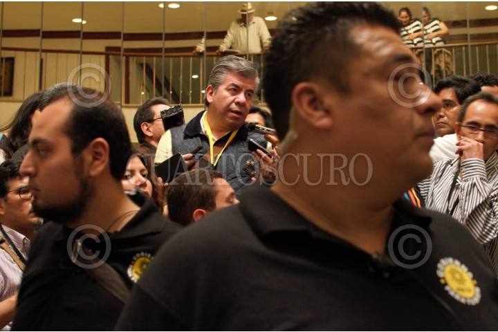 MÉXICO, D.F.,21FEBRERO2015.- Raúl Flores, presidente del PRD capitalino, antes de iniciar la sesión; al frente, personal de seguridad que estuvo a cargo del acceso a la sesión. Inició la sesión del Consejo Nacional del PRD cuya finalidad será la selección de los candidatos delegacionales que contendrán en las futuras elecciones. FOTO: MARÍA JOSÉ MARTÍNEZ /CUARTOSCURO.COM