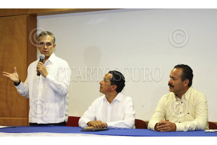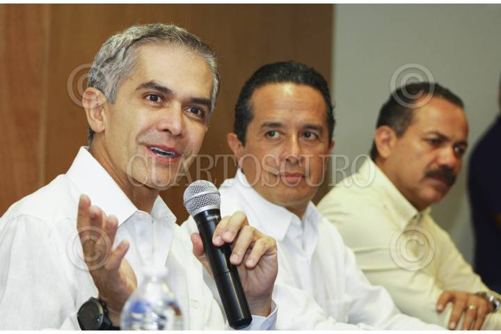 CANCÚN, QUINTANA ROO, 20MAYO2016.- Miguel Ángel Mancera, ofreció una conferencia acompañado de los candidatos de la coalición PAN-PRD, Carlos Joaquín y Julián Ricalde Magaña. FOTO: ELIZABETH RUIZ /CUARTOSCURO.COM
