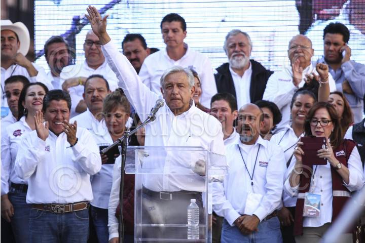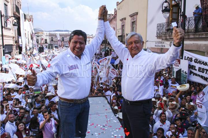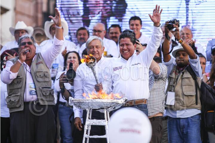 ZACATECAS, ZACATECAS, 01JUNIO2016.- David Monreal Ávila, candidato a gobernador por Morena, en compañía de Andrés López Obrador, presidente nacional del partido, realizaron el cierre de campaña en el estado, previo a la jornada electoral el próximo 5 de junio. FOTO: ADOLFO VLADIMIR /CUARTOSCURO.COM