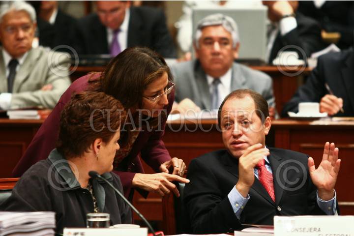 MÉXICO, D.F., 10JULIO2008.- Los consejeros del IFE, Teresa de Jesus González Luna Corvera, Lorudes del Refugio López Flores y Marco Antonio Baños Martínez, durante la sesión extraordinaria del Instituto. FOTO: ISAAC ESQUIVEL/CUARTOSCURO.COM