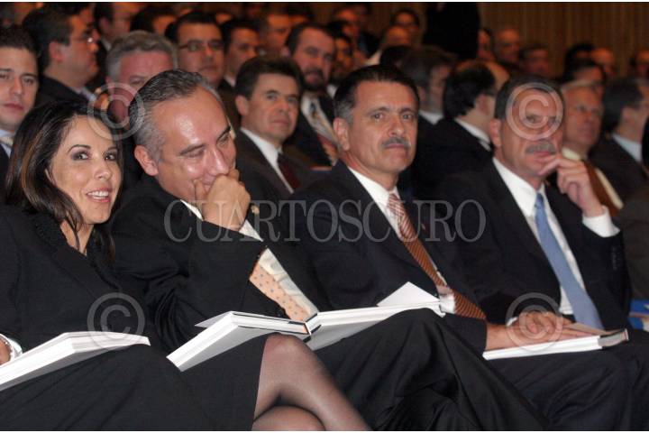MEXICO, D.F., 11OCTUBRE2005.- María de los Angeles Moreno, fiscal especial para delitos electorales, Heliodoro Díaz, presidente de la Cámara de Diputados, Carlos Abascal, Secretario de Gobernación y Enrique Jackson, presidente del Senado, durante la ceremonia de los XV años de creación del Instituto Federal Electoral. FOTO: Moisés Pablo/CUARTOSCURO.COM