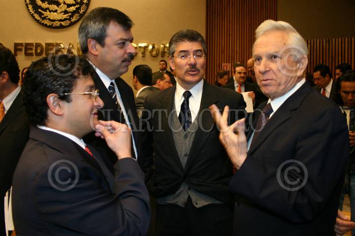 MEXICO, DF 19DICIEMBRE2005.- Los consejeros del IFE, Virgilio Andrande, Andres Albo, Arturo Sanchez y el representante del PRD ante IFE Rafael Hernandez a unos minutos antes que diera comienzo a la sesión ordinaria del Instituto Federal Electoral donde se aprobo el registro de las coaliciones Alianza por México, formado por el PRI y el PVEM y Por el bien de todos, conformado por el PRD, PT y Convergencia. FOTO: Leonardo Casas/CUARTOSCURO.COM