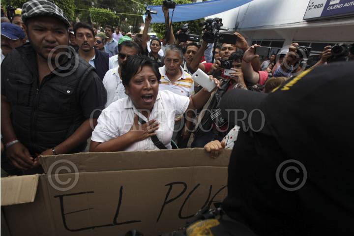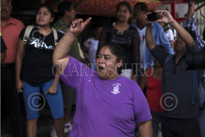TIXTLA, GUERRERO, 07JUNIO2015.- Simpatizantes del Partido Revolucionario Institucional realizaron una marcha "Por la Paz" y al final intentan retomar el Ayuntamiento municipal, que se encuentra tomado por los familiares de los 43 estudiantes normalistas desaparecidos. La Policía Comunitaria que se encontraba en el lugar recibió agresiones de los tricolores, por lo que se retiró del lugar. FOTO: FÉLIX MÁRQUEZ / CUARTOSCURO.COM