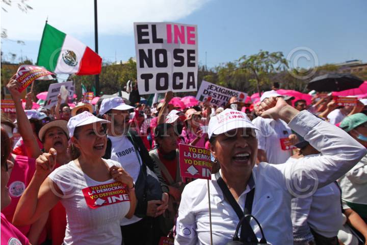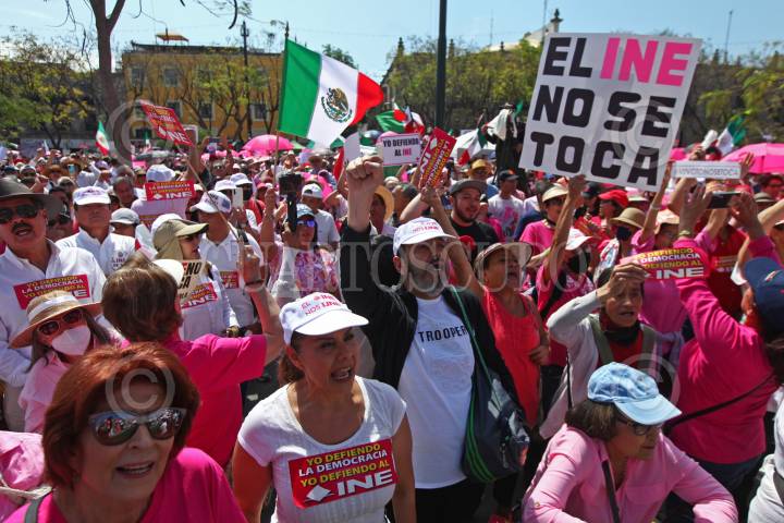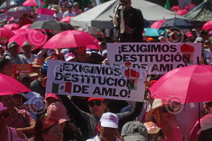 Imagen general de los asistentes a la protesta en contra del Plan B, iniciativa propuesta por el Presidente de la Republica AMLO.