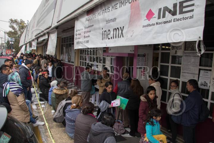 CIUDAD DE MÉXICO, 30ENERO2018.- El día de mañana se vence el plazo para tramitar su la credencial de elector del INE. Decenas de personas hacen largas filas y esperan por horas en los módulos de la onceava junta distrital ubicada en la delegación Venustiano Carranza. FOTO: SAÚL LÓPEZ /CUARTOSCURO.COM