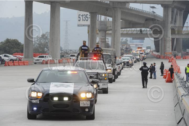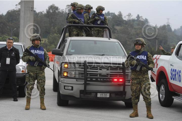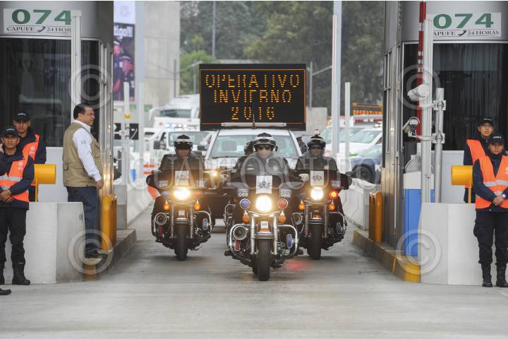 CIUDAD DE MÉXICO, 15DICIEMBRE2016.- Elementos de la Marina, Policia Federal y de Caminos y Puentes Federales de Ingresos y Servicios Conexos (CAPUFE) particparon en la puesta en marcha del operativo vacacional 2016 en la caseta de la autopista México-Cuernavaca. FOTO: ARMANDO MONROY /CUARTOSCURO.COM