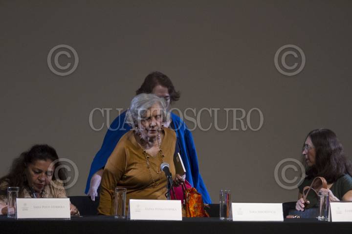 CIUDAD DE MÉXICO, 18SEPTIEMBRE2016.- Jacobo Sefami, Sandra Lorenzano, Sara Poot Herrera, Elena Poniatowska, Sara Sefchovich, y Luz Elena Gutiérrez de Velasco, durante el coloquio "El tiempo de la dicha: la lectura de Elena Garro", en la sala Manuel M. Ponce del Palacio de Bellas Artes. FOTO: MOISÉS PABLO /CUARTOSCURO.COM