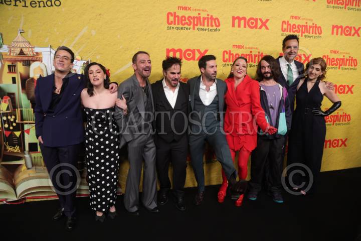 CIUDAD DE MÉXICO, , 03JUNIO2025. Parte del elenco a su paso por la alfombra roja de la serie “Chespirito, Sin querer queriendo” en su noche de estreno por la plataforma Max. FOTO: EDGAR NEGRETE LIRA/CUARTOSCURO.COM