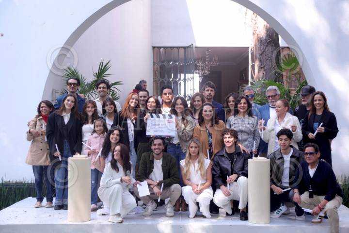CIUDAD DE MÉXICO, 04JULIO2025. Parte del elenco en el pizarrazo por inicio de grabaciones de la nueva telenovela “Doménica Montero”, producida por Televisa Univisión. FOTO: EDGAR NEGRETE LIRA/CUARTOSCURO.COM