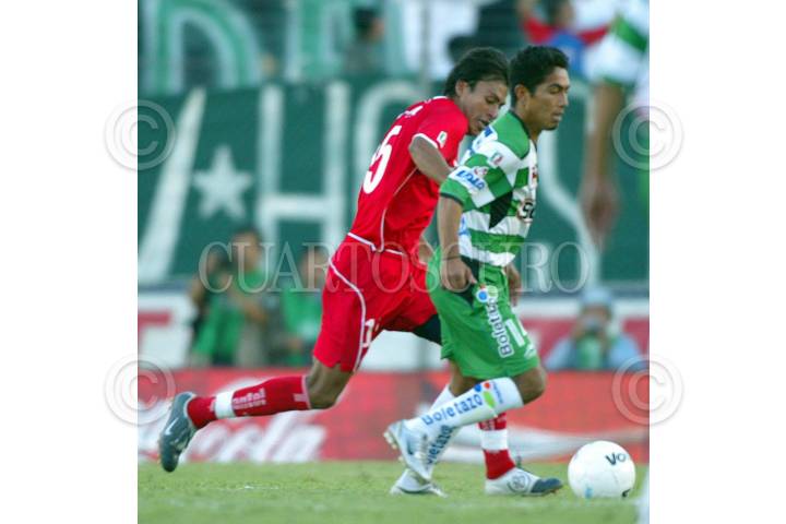 TORREON, COAHUILA 03 NOVIEMBRE 2004.- Elgabry Rangel de Santos se quita la marca de los jugadores de Toluca, durante el partido realizado en el estadio Corona de esta ciudad, donde Toluca vencio 1-0 a Santos. FOTO:Jorge López/CUARTOSCURO.COM
