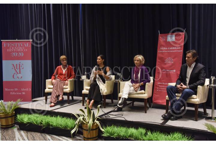 Paola Schlaepfer, directora ejecutiva del festival; Elisa Carrillo, primera bailarina; Francesca Saldívar, fundadora del festival y presidenta del patronato del Festival del Centro Histórico y Carlos Córdova-Plaza, miembro del patronato del festival, durante la presentación de la Edición 36 del Festival Centro Histórico.