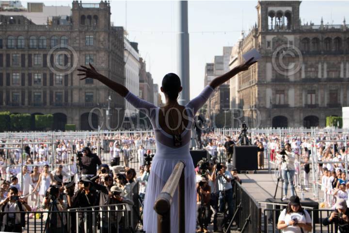 CIUDAD DE MÉXICO, 17MARZO2024.- Elisa Carrillo Cabrera encabezó una clase masiva de ballet en el zócalo la cual reunió a más de cinco mil participantes. FOTO: GOBIERNO DE LA CIUDAD DE MÉXICO /CUARTOSCURO.COM