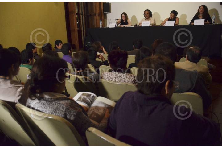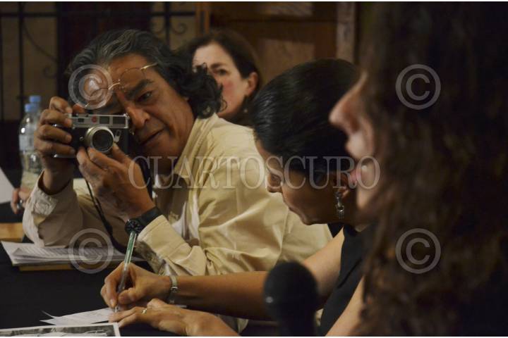 MORELIA, MICHOACÁN, 07NOVIEMBRE2012.- Elisa Lozano, colaboradora de la Revista Cuartoscuro, Pedro Valtierra, director de Cuartoscuro, Arcelia Ramírez, actriz, y María Grinda, fotógrafa, durante la presentación del número 116 de la Revista Cuartoscuro, cuya edición esta dedicada a la foto fija del cine mexicano, al finalizar la presentación se realizo la inauguración de una exposición fotográfica en la escuela Fábrica de Imágenes. FOTO: ALÁN ORTEGA /CUARTOSCURO.COM