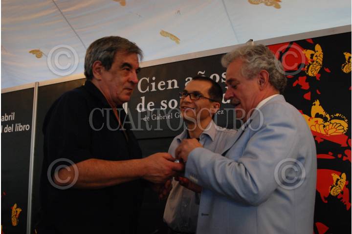 GUADALAJARA, JALISCO 23ABRIL2007. Eliseo Alberto, Pablo Boullosa, Gonzalo Celorio durante la presentación oficial conmemorativa de Cien años de soledad de Gabriel García Márquez, dentro del Día Internacional del Libro FOTO CLAUDIA ARÉCHIGA/CUARTOSCURO.COM