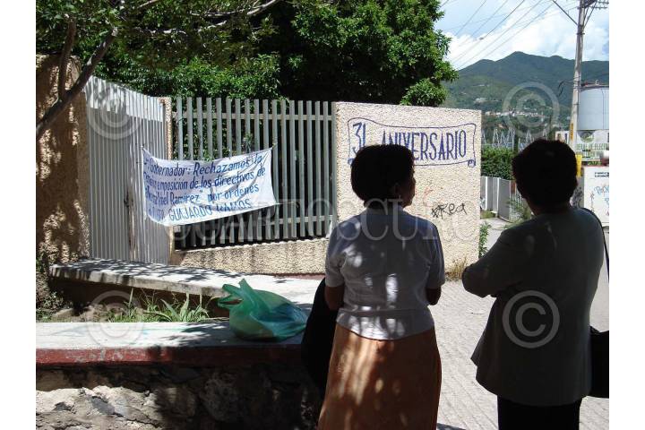 CHILPANCINGO, GUERRERO. 28AGOSTO2007.- Maestros de la normal urbana federal "Rafael Ramirez", durante el paro de labores que iniciaron este martes en la capital del estado, para rechazar la remosion e imposicion de los directivos de dicha institucion educativa, los cuales dicen fueron movidos y designados de manera arbitraria por las ordenes de Eliseo Guajardo Ramos subsecretario de educacion media superior y superior de la SEG. FOTO:OSCAR ALVARADO/CUARTOSCURO.COM