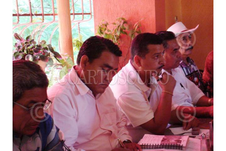 CHILPANCINGO, GUERRERO. 28AGOSTO2007.- Integrantes de la Asamblea Popular de los Pueblos de Guerrero (APPG), durante la conferencia de prensa, donde informaron que ante la negativa del Congreso local de no entregar la presea "Sentimientos de la Nacion", el proximo 13 de septiembre, ellos haran un acto publico en el zocalo de la ciudad capital, donde entregaran la presea "Sentimiento del Pueblo" al luchador social Pablo Sandoval Cruz. FOTO: OSCAR ALVARADO/CUARTOSCURO.COM