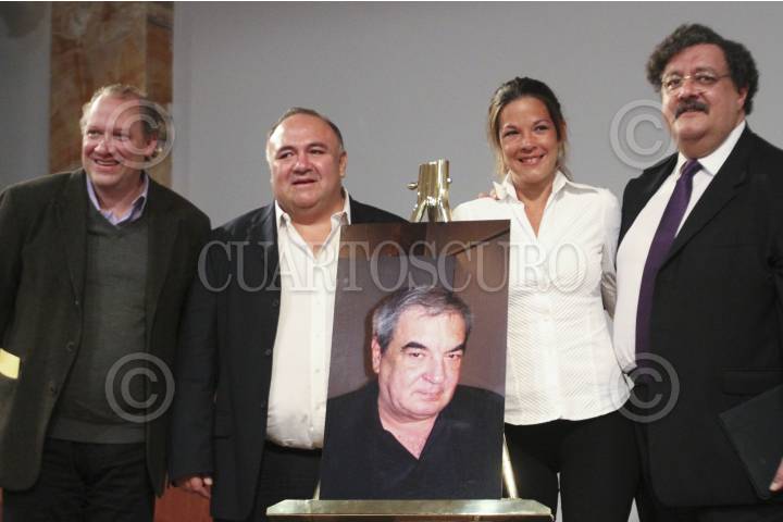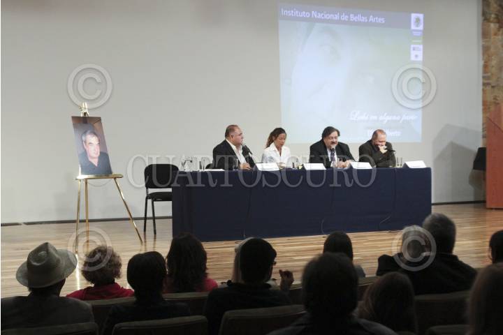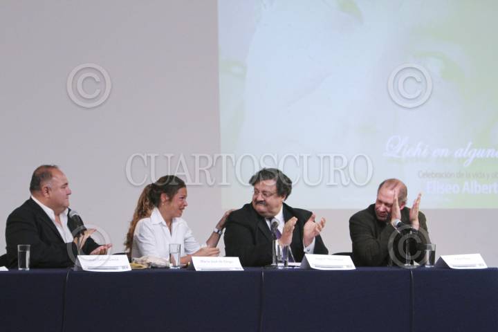 MÉXICO, D.F., 11SEPTIEMBRE2011.- María José de Diego, los escritores Jorge F. Hernández, Rafael Rojas y Juan Carlos García Álvarez, rindieron un homenaje póstumo al escritor cubano Eliseo Alberto (1951-2011), mejor conocido como "Lichi" en la sala Manuel M. Ponce del Palacio de Bellas Artes. FOTO: GUILLERMO PEREA/CUARTOSCURO.COM