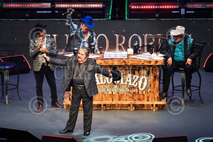 CIUDAD DE MÉXICO, 15JULIO2024.- Don Heraclio y Chuy, líderes del grupo Los Huracanes del Norte, durante la conferencia de prensa en la cual presentaron su próximo concierto en la Arena México el sábado 3 de agosto, acompañados por Eliseo Robles y Los Tiranos del Norte. FOTO: ALICE MORITZ/CUARTOSCURO.COM