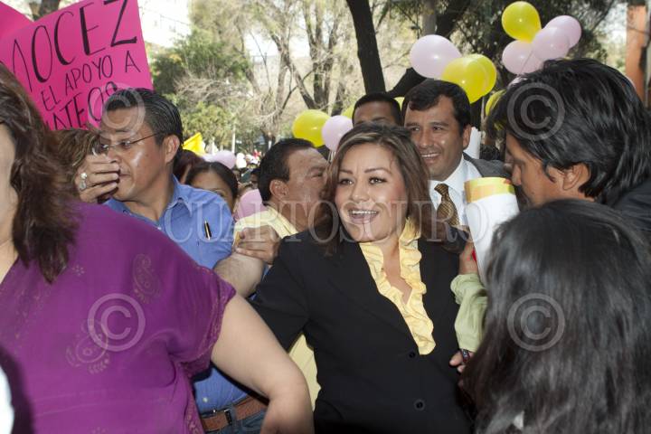 MÉXICO, D.F., 27ENERO2012.- Elizabeth Moreno se registró en las oficinas de la Comisión Nacional Electoral del PRD como precandidata a Jefa Delegacional de Iztacalco. La perredista se hizó acompañar por Francisco Javier Sánchez Cervántes, actual Jefe Delagacional de Iztacalco. FOTO: MOISÉS PABLO/CUARTOSCURO.COM
