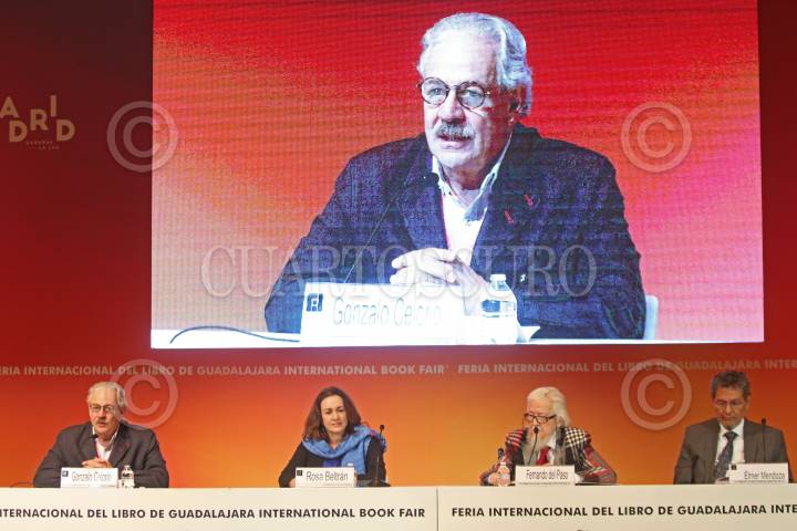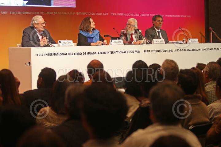GUADALAJARA, JALISCO, 01DICIEMBRE2017.- De todos modos Juan te llamas fue el evento en el que participaron los escritores Fernando del Paso, Elmer Mendoza y Rosa Beltran, esto en el marco de la edición 31 de la Feria Internacional del Libro de Guadalajara (FIL), que se lleva a cabo en las instalaciones de la Expo y en donde el invitado de Honor es Madrid. FOTO: FERNANDO CARRANZA GARCIA / CUARTOSCURO.COM