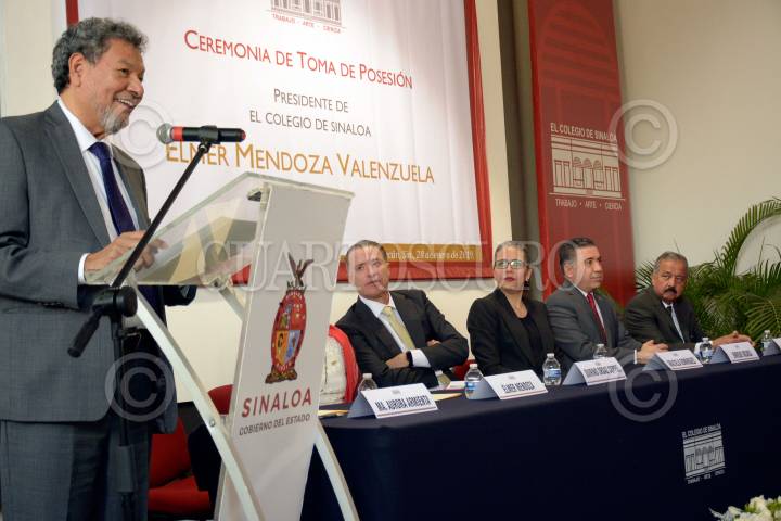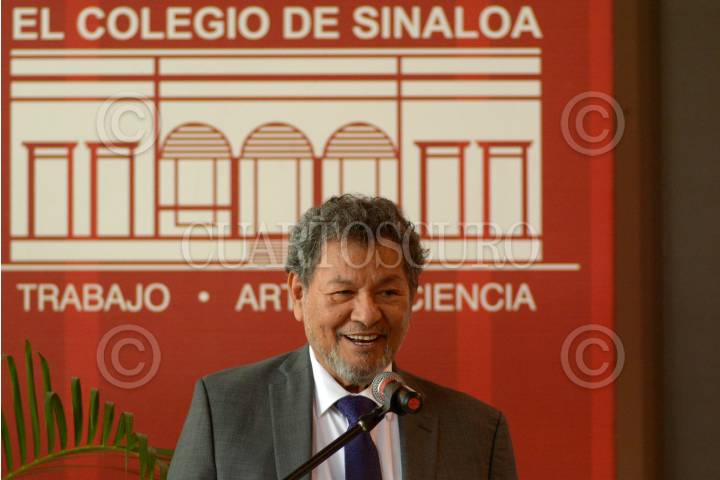 CULIACÁN, SINALOA, 28ENERO2019.- El escritor sinaloense Elmer Mendoza fue nombrado director del Colegio de Sinaloa. Al evento asistieron como testigos de honor, el gobernador Quirino Ordaz Coppel, Enrique Villa Rivera, secretario de educación en el estado, y el poeta Jaime Labastida, director de la Academia Mexicana de la Lengua. FOTO: JUAN CARLOS CRUZ /CUARTOSCURO.COM