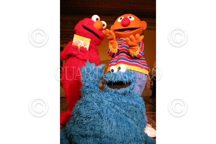 MEXICO D.F. 13NOVIEMBRE2006.- Elmo y Plaza Sésamo regresan nuevamente a México con un nuevo y espectacular show “Coloreando con Elmo ” esta vez presentandose en el auditorio nacional. Elmo, Enrique y el moustro come galletas antes de la conferencia de prensa. FOTO: GERMÁN ROMERO/CUARTOSCURO.COM