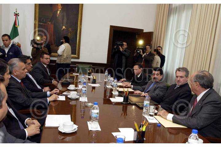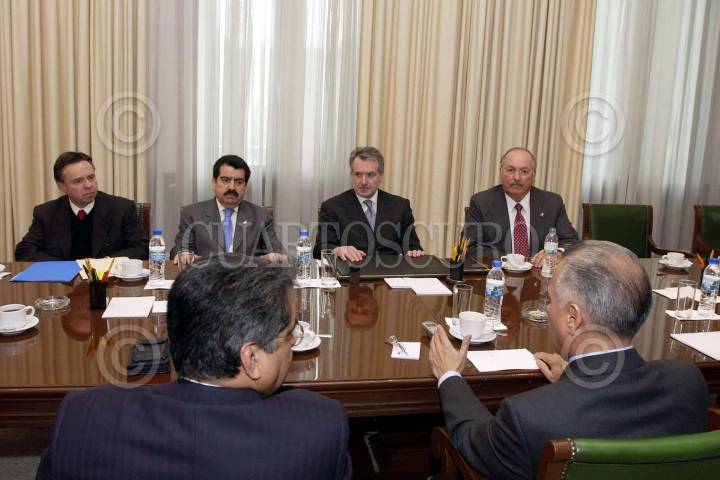 MEXICO, D.F. 20ENERO2005.- Santiago Creel, Secretario de Gobernación sostuvo una reunión con Rafael Macedo de la Concha, Procurador de la República, Ramón Martín Huerta, Secretario de Seguridad Pública Federal y Eugenio Elorduy Walter, gobernador de Baja California, en la SEGOB. FOTO: Ignacio González/CUARTOSCURO.COM