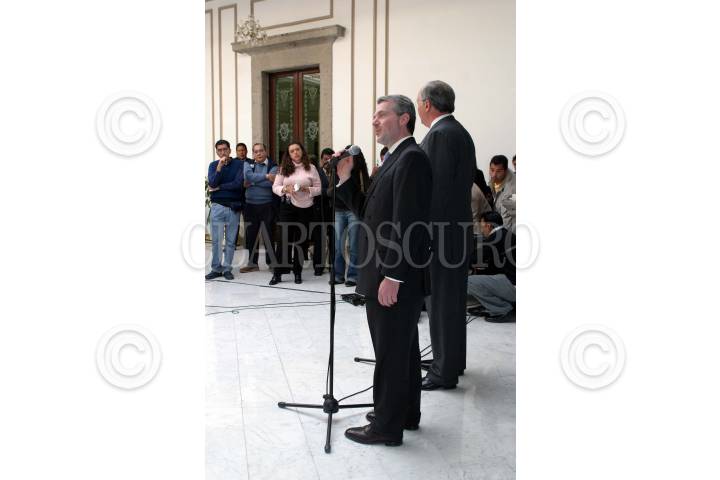 MEXICO, D.F. 20ENERO2005.- Santiago Creel, Secretario de Gobernación y Eugenio Elorduy Walter, gobernador de Baja California ofrecieron una conferencia de prensa, después de sostener una reunión con los titulares de PGR, PGP y CISEN. FOTO: Moisés Pablo/CUARTOSCURO.COM