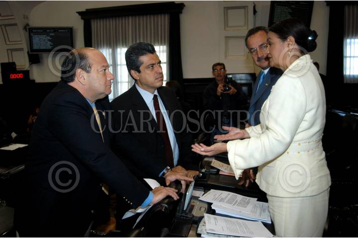 MEXICO, D.F., 04ABRIL2006.- Los senadores Cesar Raúl Ojeda, Felipe de Jesús Vicenzio, Ernesto Gil Elorduy y Dulce María Sauri, durante la sesión ordinaria en el Senado. FOTO: Moisés Pablo/CUARTOSCURO.COM