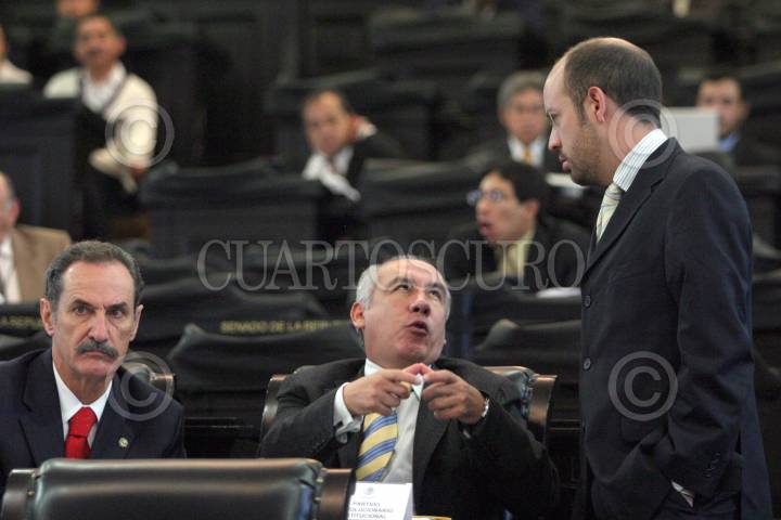 MEXICO, D.F., 17MAYO2006.- El senador Ernesto Gil Elorduy, PRI y los diputados Heliodoro Díaz, PRI y Inti Muñoz, PRD, durante la sesión de la Comisión Permanente en el Senado de la República. FOTO: Moisés Pablo/CUARTOSCURO.COM